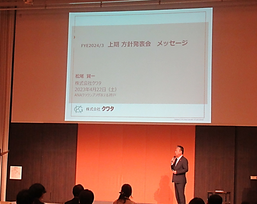 株式会社クワタは、2023年4月22日(土)に、24/3期 上期方針発表会を開催いたしました。